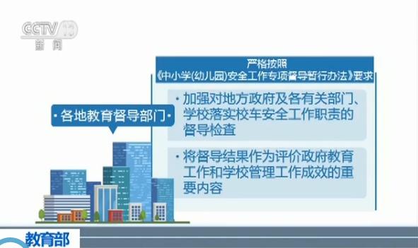 同時,各地教育督導(dǎo)部門要嚴格按照《中小學(幼兒園)安全工作專項督導(dǎo)暫行辦法》的要求,加強對地方政府及各有關(guān)部門、學校落實校車安全工作職責的督導(dǎo)檢查。將督導(dǎo)結(jié)果作為評價政府教育工作和學校管理工作成效的重要內(nèi)容。