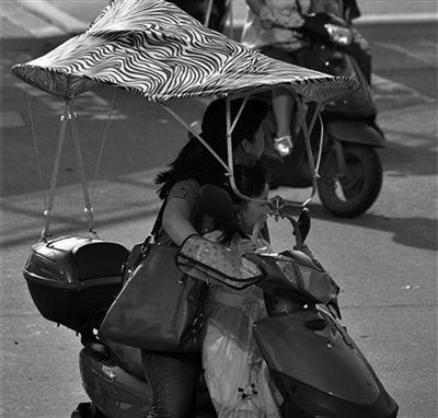 理由:如果騎車讓小朋友坐在車后面打傘,會(huì)非常危險(xiǎn),因?yàn)樾∨笥驯旧眢w重就輕,打傘容易導(dǎo)致小朋友重心不穩(wěn)。如果騎車人選擇打傘,一只手扶車一只手打傘,后面再坐個(gè)孩子更不安全。