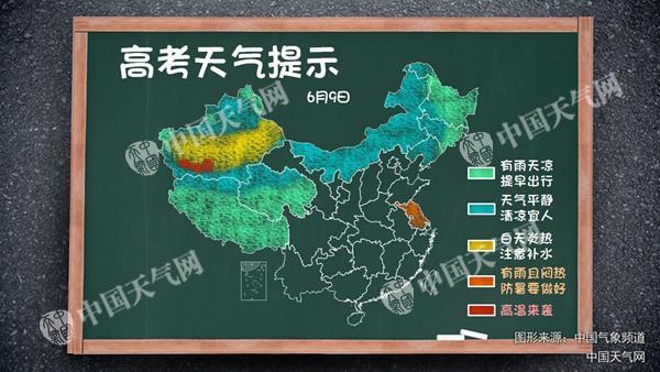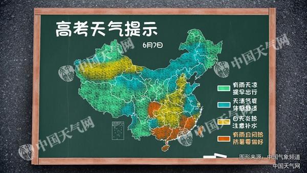 今天是2017年高考的第一天,全國雨水整體較弱,以小到中雨為主,早晨吉林、黑龍江以及華南等地可能出現(xiàn)降雨,建議考生稍微早點(diǎn)出門。今天白天陜西、江南、華南等局地有中到大雨,還可能出現(xiàn)短時強(qiáng)降水、雷暴大風(fēng)等強(qiáng)對流天氣。中央氣象臺預(yù)計(jì),新疆北部、陜西中部、云南東南部、江南東南部、華南中東部、海南島等地有中到大雨,局地有暴雨。