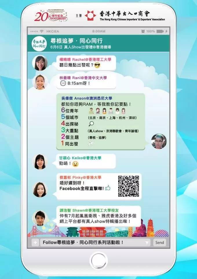 據(jù)悉,該活動(dòng)為中出慶回歸廿周年系列活動(dòng)的重點(diǎn)項(xiàng)目,籌備歷時(shí)半年,以真人騷形式進(jìn)行,特別安排專業(yè)攝製團(tuán)隊(duì)跟拍活動(dòng)全程,邀請(qǐng)了6位不同背景的香港青年圍繞“尋根”、“追夢(mèng)”的主題,游歷北京、南京、上海、杭州及深圳五個(gè)城市,廣泛接觸在內(nèi)地工作、創(chuàng)業(yè)、學(xué)習(xí)的香港青年,用香港青年的眼光看中華民族的歷史與民間風(fēng)俗,了解內(nèi)地的經(jīng)濟(jì)發(fā)展和今昔變遷。