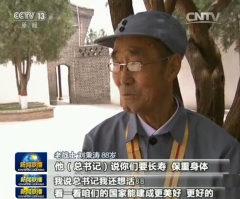 不忘初心、繼續(xù)前進,在呂梁市興縣,總書記還瞻仰了晉綏邊區(qū)革命紀(jì)念館,參觀了晉綏邊區(qū)政府、晉綏軍區(qū)司令部舊址,并同晉綏邊區(qū)的老戰(zhàn)士老同志代表親切交談。88歲的劉秉濤老人見到總書記時,行了個莊嚴(yán)的軍禮。