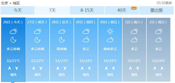 未來三天北京多分散性雷陣雨 最高溫可達33℃