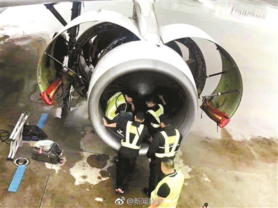 機務(wù)人員對被扔進硬幣的發(fā)動機進行緊急檢查