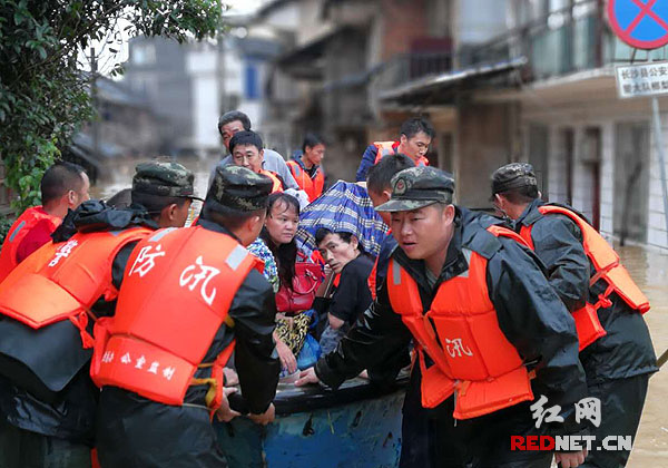 1日下午15時(shí)30分,長(zhǎng)春垸新橋河鎮(zhèn)烈公橋段河堤又密集出現(xiàn)十二處小管涌,救災(zāi)官兵來(lái)不及洗去臉上的泥土,又投入到緊張的救援工作中,兩個(gè)小時(shí)候,十余處險(xiǎn)情全部被排除。6月30日下午18時(shí),暴雨侵襲下的湘西沅江水位持續(xù)上漲,瀘溪縣境內(nèi)浦市至武溪段全面超警。武警湘西支隊(duì)115名官兵連夜奮戰(zhàn)在一線(xiàn),全力抗擊洪峰。在武溪鎮(zhèn)五里洲村,截至目前,該支隊(duì)共疏散、轉(zhuǎn)移群眾1000余人,排查化解各類(lèi)安全隱患6起,裝填沙袋2000多袋,打好木樁500余個(gè),幫助轉(zhuǎn)移財(cái)產(chǎn)物資50余萬(wàn)元。1日凌晨5時(shí),洪水漫灌懷化辰溪縣城,城區(qū)到處一片汪洋,全域進(jìn)入防汛1級(jí)應(yīng)急響應(yīng)。懷化支隊(duì)50余名救援官兵迅速馳援,利用自帶皮劃艇和征用民用木船等手段,深入老城區(qū)中心轉(zhuǎn)移受困群眾800余人。救援中,一名高燒兩天多的4歲女孩被困3樓家中,該支隊(duì)參謀長(zhǎng)王良華帶一艘皮劃艇避開(kāi)縱橫交錯(cuò)的架空電線(xiàn),成功將其轉(zhuǎn)移至附近醫(yī)院。
