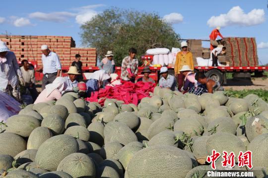 哈密市產(chǎn)哈密瓜每年從6月底開始采摘一直持續(xù)至9月。 朱錦慧 攝