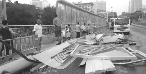 除了海鮮店,旁邊另有三家沿街商鋪也被爆炸波及,門(mén)店玻璃等破損。受爆炸影響,現(xiàn)場(chǎng)正對(duì)面緯六路高架橋上的三塊隔音板被炸壞,斷裂的隔音板橫在高架橋上,碎裂產(chǎn)生的玻璃碴飛出了20余米遠(yuǎn),可見(jiàn)當(dāng)時(shí)的爆炸威力之大。