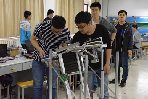 在第五屆山東省大學生機器人大賽前參賽隊伍調(diào)試機器人,最終獲總冠軍。
