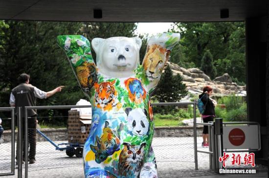 闊別五年后,德國(guó)柏林終于再度迎來一對(duì)中國(guó)大熊貓。圖為7月4日,柏林動(dòng)物園入口處的吉祥物“柏林熊”繪上了大熊貓的圖案。7月5日,來自中國(guó)的“夢(mèng)夢(mèng)”和“嬌慶”將正式與德國(guó)公眾見面。中新社記者 彭大偉 攝
