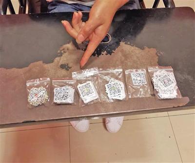 民警從嫌疑人隨身包里共查獲314張二維碼,其中印有“娃娃臉”標(biāo)志的2張、“一棵小樹”標(biāo)志的42張、“五角硬幣”標(biāo)志的68張、“銀聯(lián)”標(biāo)志的73張、“人民幣”標(biāo)志的98張、“初見”標(biāo)志的31張。