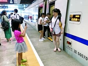 旅客帶娃站臺(tái)爭(zhēng)相合影