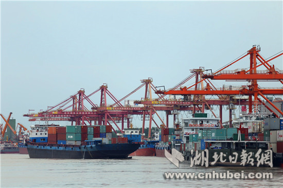 武漢新港已成為長(zhǎng)江中上游最大的集裝箱碼頭 記者裴斌攝