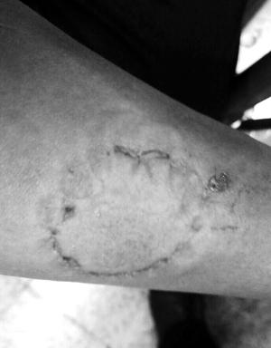 昨天,網(wǎng)曝地鐵5號線上一便衣警察在抓色狼時被咬傷。北京晨報記者從照片中看到,一名便衣民警的手臂上有一個圓形、深深的牙印,局部還有血跡。此事引發(fā)了網(wǎng)友對色狼的聲討。