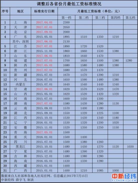 原標(biāo)題:31省市最低工資排名:上海第一 廣西墊底