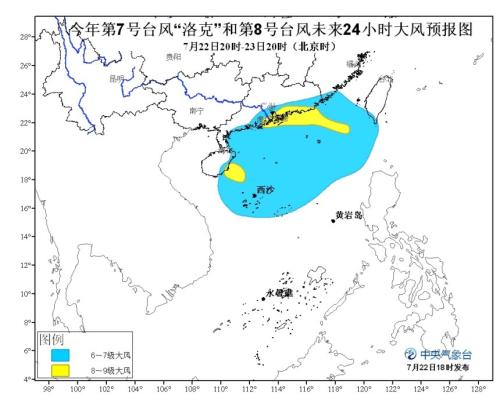 今年第7號(hào)臺(tái)風(fēng)“洛克”(熱帶風(fēng)暴級(jí))今天(22日)下午在南海東北部海面生成,下午5點(diǎn)鐘其中心位于廣東深圳東偏南方約485公里的海面上,就是北緯21.5度、東經(jīng)118.7度,中心附近最大風(fēng)力有8級(jí)(18米/秒),中心最低氣壓為998百帕,七級(jí)風(fēng)圈60-80公里。
