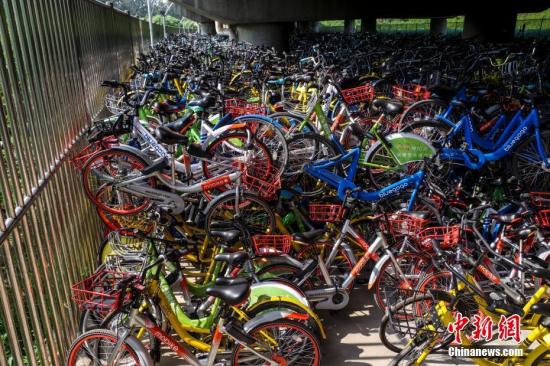 8月8日,數(shù)千輛共享單車被“遺棄”在北京一高架橋下。中新社記者 賈天勇 攝