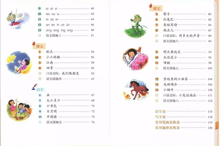 今年新入學的小學生拿到語文課本后,打開書,是這樣的: