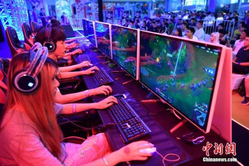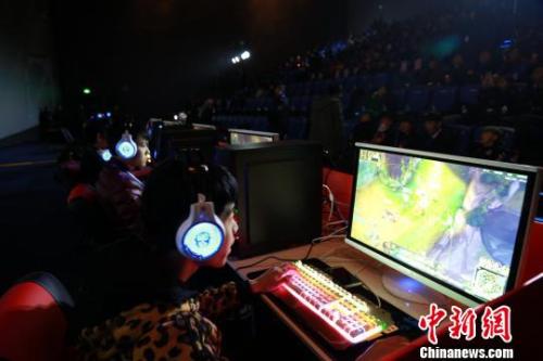 資料圖:2017中國(guó)·石家莊第十二屆國(guó)際動(dòng)漫博覽交易會(huì)的電競(jìng)現(xiàn)場(chǎng),一場(chǎng)《英雄聯(lián)盟》比賽拉開“戰(zhàn)幕”。 中新社記者 翟羽佳 攝