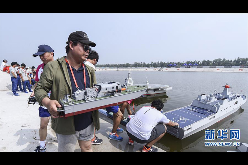 這是在全運會群眾項目航海模型比賽中,選手們準(zhǔn)備參加仿真模型立體對抗項目比賽(7月8日攝)。