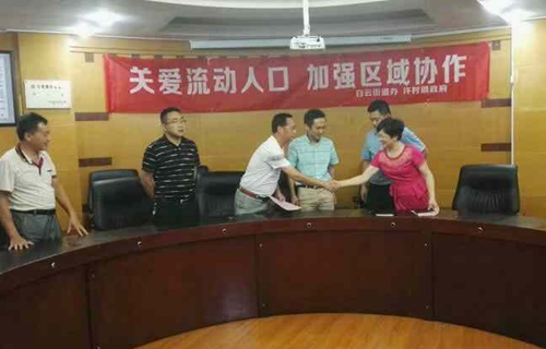 央廣網南昌9月9日消息(記者于聞 通訊員 宋振華)江西省婺源縣許村鎮(zhèn)與浙江省東陽市白云街道辦開展流動人口服務與管理雙向協作。