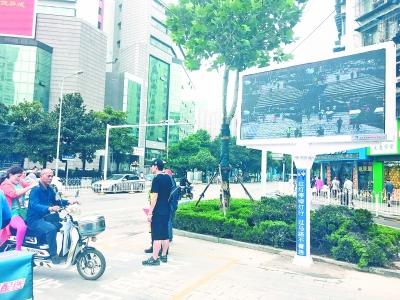 昨天上午10點(diǎn)30分,武漢晚報記者在解放大道循禮門路口看到,人行道一側(cè)安裝了一個大屏幕,上方兩個高清攝像頭對準(zhǔn)斑馬線,對闖紅燈過馬路的行人、非機(jī)動車違法行為進(jìn)行抓拍。大屏幕上滾動播放著該路口行人、非機(jī)動車闖紅燈行為的抓拍視頻。對于被抓拍的行人,還有高清的“大頭照”。