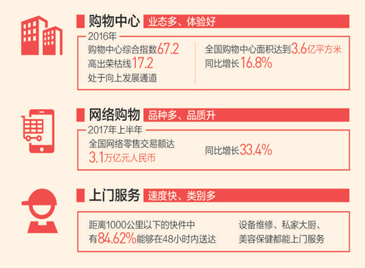 近年來(lái),受到電商沖擊、商業(yè)地產(chǎn)租金上漲的影響,一些城市的傳統(tǒng)百貨店出現(xiàn)了閉店現(xiàn)象,然而,不少綜合型購(gòu)物中心卻憑借優(yōu)質(zhì)的服務(wù)和良好的購(gòu)物體驗(yàn)吸引了越來(lái)越多消費(fèi)者!吨袊(guó)購(gòu)物中心發(fā)展指數(shù)報(bào)告》指出,2016年購(gòu)物中心綜合指數(shù)為67.2,高出榮枯線17.2,行業(yè)整體處于健康向上的發(fā)展通道,且對(duì)未來(lái)趨勢(shì)持有較強(qiáng)的信心。