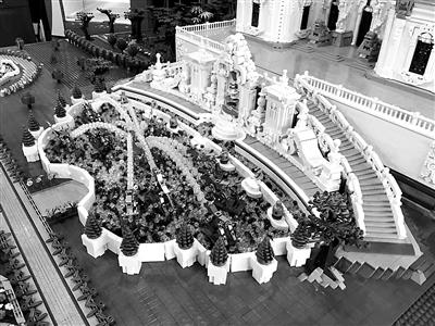 10月20日,“大水法”模型制作團隊的負責人王先生告訴北青報記者,他們是從今年開始籌備用積木復(fù)原圓明園這一項目的,耗時半年,目前已經(jīng)完成觀水法、大水法、遠瀛觀部分的搭建,共使用了約66萬塊積木,模型沙盤所占面積為4.47平方米。