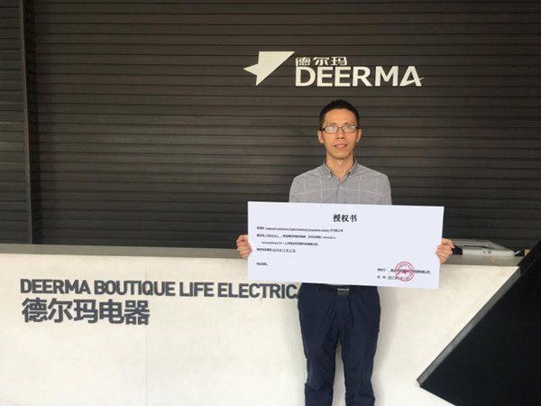 德爾瑪廠長白蜀強(qiáng)興奮地向記者展示與京東售全球簽署的授權(quán)書