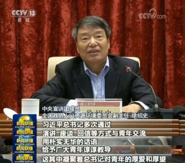 21日,中央宣講團(tuán)成員、全國政協(xié)人口資源環(huán)境委員會(huì)副主任徐紹史來到山東大學(xué)作宣講。