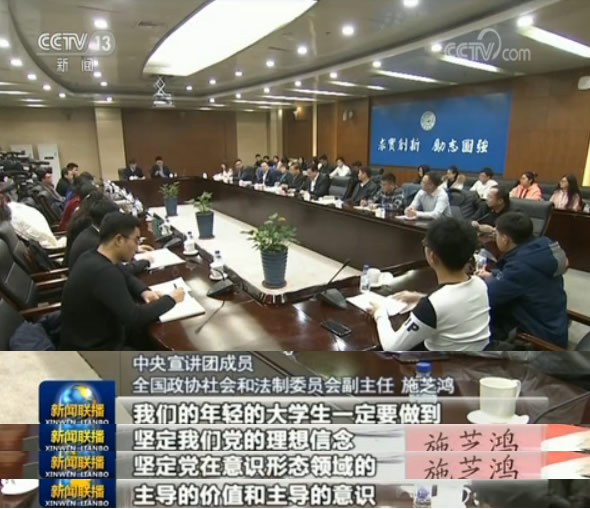 在吉林大學(xué),中央宣講團(tuán)成員、全國政協(xié)社會(huì)和法制委員會(huì)副主任施芝鴻理論聯(lián)系實(shí)際為師生們宣講。