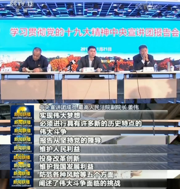 在武漢大學(xué),中央宣講團(tuán)成員、最高人民法院副院長姜偉圍繞黨的十九大的主要成果等主題,為師生代表宣講。