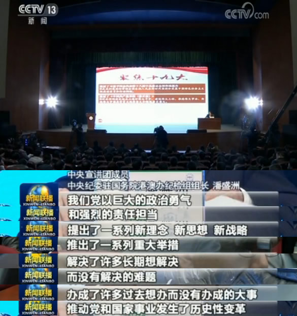 央視網(wǎng)消息(新聞聯(lián)播):連日來,學(xué)習(xí)貫徹黨的十九大精神中央宣講團(tuán)走進(jìn)高校,通過透徹深入的宣講、貼近實(shí)際的解讀,讓黨的十九大精神落地生根。