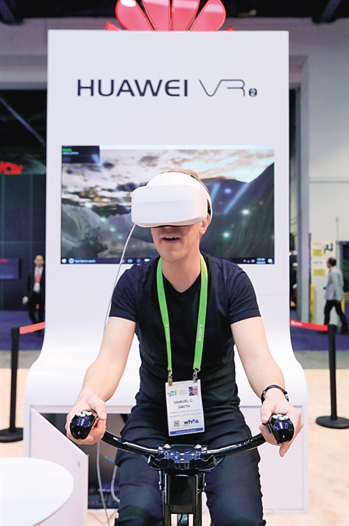1月10日,在美國拉斯韋加斯,一名男子在消費電子展上體驗華為公司的虛擬現(xiàn)實設(shè)備。新華社記者 李 穎 攝