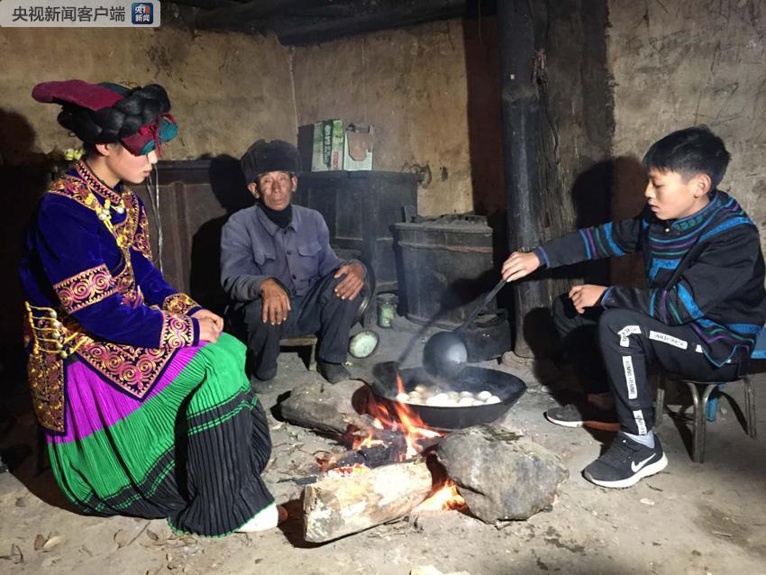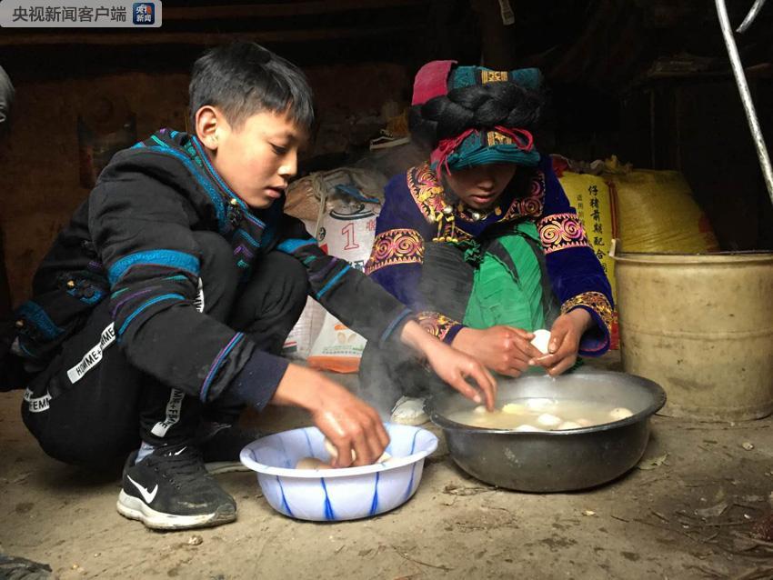 為了這次相聚,里呷早早就起床,在屋角的土豆堆里精挑細選,土豆是自家地里刨出來的,是里呷一家的日常主食。里呷記得去年家訪時列車的叔叔阿姨說起這里的土豆軟糯香甜口感好,就想著烤些土豆讓叔叔阿姨們嘗嘗。他很認(rèn)真地挑選著,形狀不規(guī)則的不要,表皮不光滑的不要,不漂亮的不要,有黑斑的不要,要長綠芽的不要……再三甄選對比,細致清洗。姐姐呷呷在火塘里上生起了火,架上鐵鍋,正在咕嘟嘟的煮著雞蛋,白色的雞蛋在鍋里翻滾。