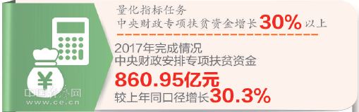 2017年,我國大力支持脫貧攻堅。中央財政專項扶貧資金增長30.3%,農(nóng)業(yè)、教育、醫(yī)療、交通等領域資金同步加大對貧困地區(qū)投入力度。我國將貧困縣財政涉農(nóng)資金整合試點推廣到全部貧困縣。2017年,貧困縣整合財政涉農(nóng)資金2956億元,比上年增加26%。