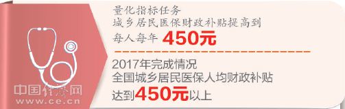2017年,全國城鄉(xiāng)居民醫(yī)保人均財政補助標準在2016年的基礎上再獲提升,達到平均每人每年450元。隨著醫(yī)保制度不斷健全,政府投入逐年增加,醫(yī)保保障水平穩(wěn)步提高,保障范圍明顯擴大。在提高居民醫(yī);I資標準、按規(guī)定落實困難人群個人繳費補助的基礎上,我國還合理確定大病保險籌資標準,增強大病保險保障能力,并加大大病保險向困難人員傾斜政策力度,通過降低起付線、提高報銷比例等實施精準支付政策,貧困人口受益水平得到切實提高。