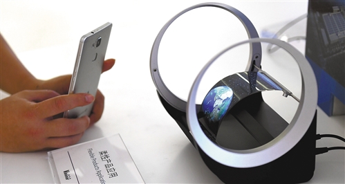 投資近300億元、具有完全自主知識產(chǎn)權(quán)的維信諾(固安)第六代全柔AMOLED生產(chǎn)線日前在河北省廊坊市固安產(chǎn)業(yè)新城正式啟動運行。圖為一名參觀者在維信諾展廳拍攝可彎曲屏幕。 新華社記者 王 曉攝