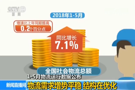 央視網(wǎng)消息:中國物流與采購聯(lián)合會今天(28日)公布了今年前五個月社會物流運行數(shù)據(jù)。1-5月物流需求保持平穩(wěn)增長,結(jié)構(gòu)進一步優(yōu)化,物流行業(yè)發(fā)展勢頭良好。