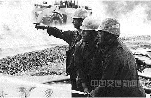 上世紀(jì)80年代秦皇島港工人為自燃煤堆滅火。