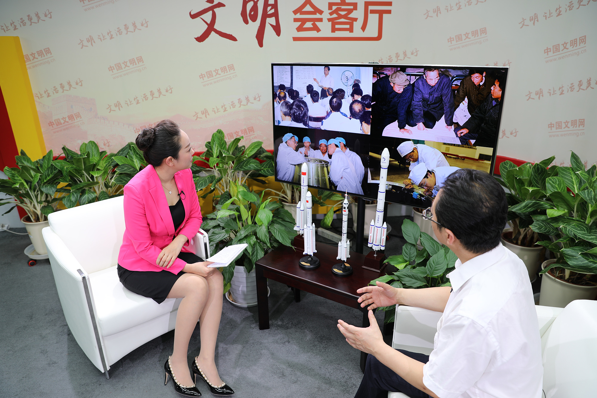 王國(guó)輝在訪談現(xiàn)場(chǎng)講述長(zhǎng)征系列運(yùn)載火箭設(shè)計(jì)研發(fā)的故事。中國(guó)文明網(wǎng) 王楠 攝