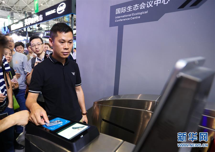 在貴州省貴陽市舉行的2018中國國際大數(shù)據(jù)產(chǎn)業(yè)博覽會上,參觀者在體驗支付寶公交刷卡進站系統(tǒng)(5月26日攝)。 新華社記者 劉續(xù) 攝