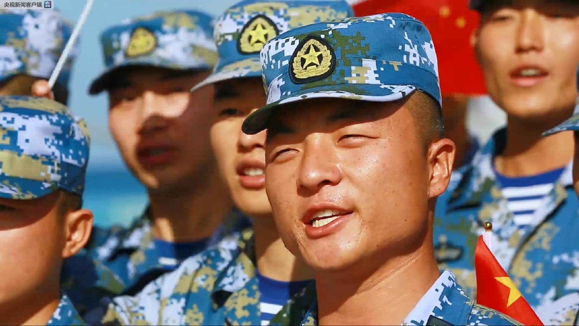 “我和我的祖國,一刻也不能分割。無論我走到哪里,都流出一首贊歌!比澈\姂(zhàn)士李宗霖領唱歌曲。接著,三沙駐島戰(zhàn)士從遠處走來,齊聲高歌,意氣風發(fā)、豪情滿懷地歌唱,表達了對祖國的眷眷深情。