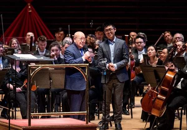 最后一個音符落下后,在龔天鵬的邀請下,79歲的尚長榮出現(xiàn)在舞臺上。他健步如飛,聲如洪鐘,帶著戲曲腔對所有觀眾說,“音樂是最美好的聲音,音樂給人類帶來福祉,音樂是超越國界的存在。希望兩個樂團的合作源遠流長,兩國人民的文化藝術交流代代相傳!