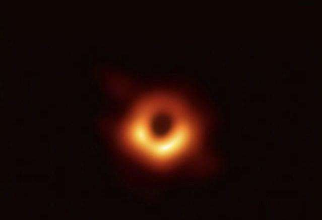 2019年4月10日,包括中國在內(nèi),全球多地天文學家同步公布了“事件視界望遠鏡”(EHT)項目的第一項重大成果:人類有史以來獲得首張黑洞照片。該黑洞位于室女座一個巨橢圓星系M87的中心,距離地球5500萬光年,質量約為太陽的65億倍。它的核心區(qū)域存在一個陰影,周圍環(huán)繞一個新月狀光環(huán)。