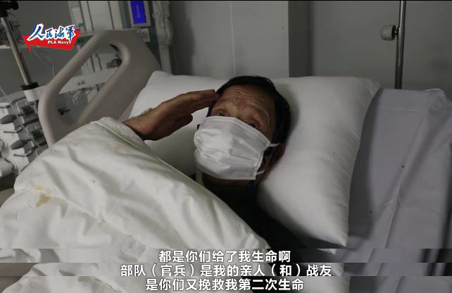 這名退伍老兵慢慢伸出顫抖的右手,向護(hù)士行了一個(gè)不太標(biāo)準(zhǔn)的軍禮。