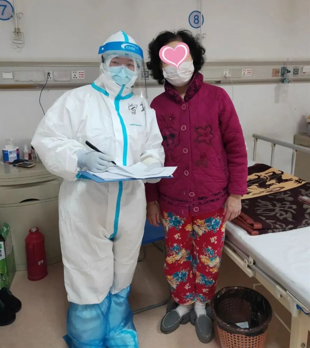 今天工作的時(shí)候,我覺(jué)得我身后有一個(gè)身影,一直跟著我。我轉(zhuǎn)身一看,一位阿姨就站在我的身后。我趕忙問(wèn):“阿姨,您有什么事需要我?guī)兔幔?/span>“阿姨說(shuō):“我不是你管的病人,看見(jiàn)你們身后寫(xiě)著河北,我也是河北人。阿姨見(jiàn)到家鄉(xiāng)人了,心里高興。”我知道了她是保定人,已經(jīng)在這里隔離治療16 天了。她主動(dòng)要給我拍照片,她說(shuō):“雖然現(xiàn)在看不出你什么樣子,但從隔離衣上能知道你們的名字。”