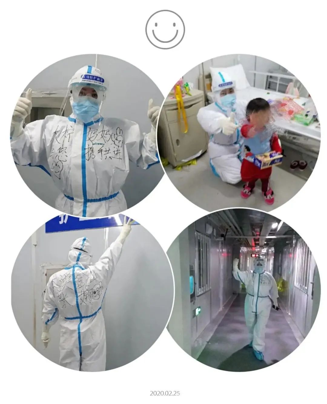 昨天,小可樂(lè)和她的媽媽出院了,我真的特別高興。小可樂(lè)今年只有兩歲零八個(gè)月大,是我們病區(qū)最小的小寶貝,我們都把她當(dāng)成自己的孩子來(lái)疼愛(ài)著,上班前和隊(duì)友總要商量帶什么玩具寶貝會(huì)喜歡。第一次見(jiàn)她的時(shí)候她忽閃著那雙水汪汪的大眼睛,正看著我防護(hù)服上畫(huà)的笑臉,見(jiàn)小可樂(lè)非常喜歡,我便畫(huà)了一個(gè)笑臉?biāo)徒o她,小可樂(lè)開(kāi)心地唱起了歌。聽(tīng)著孩子稚嫩的歌聲,我也更加思念女兒了。來(lái)到武漢,思念、牽掛,常常使我失眠,但只要想想這里有太多人需要我,雖然控制不住淚水,我也會(huì)站在鏡子面前握緊拳說(shuō):“要堅(jiān)強(qiáng),要加油,勝利就在不遠(yuǎn)的前方!