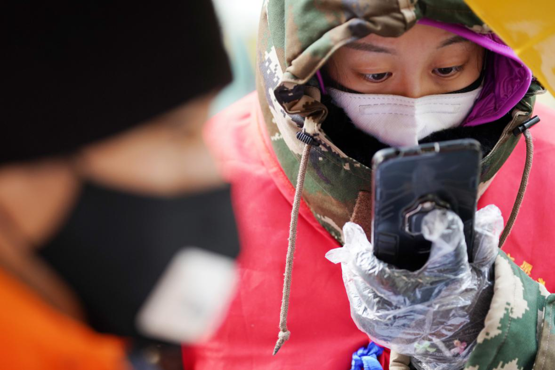 1993年出生的李文琦,是在深圳工作的哈爾濱人,春節(jié)返鄉(xiāng)回哈后成為社區(qū)志愿者。她說:“國家有難,我們‘90后’正值青年,身強力壯,應該往前沖!眻D為李文琦(右)在檢查往來車輛人員的手續(xù)證明。新華社記者 王建威/攝