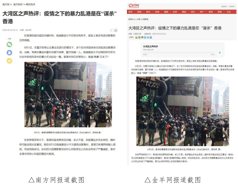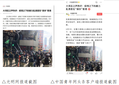 截至5月6日,中央媒體光明網、中國青年網頭條號,主要商業(yè)門戶網站新浪網、21CN等均在第一時間轉載這篇文章,支持香港特區(qū)政府的抗疫舉措和警方嚴正執(zhí)法,堅定維護香港繁榮穩(wěn)定的法治基礎。