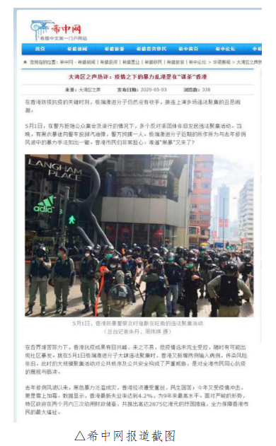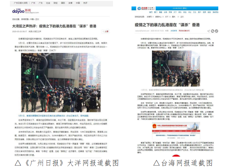 中央廣播電視總臺“大灣區(qū)之聲”5月3日刊播題為《大灣區(qū)之聲熱評:疫情之下的暴力亂港是在“謀殺”香港》的評論文章,對香港極端激進分子在疫情之下仍然沒有收手,一再上演違法聚集、暴力亂港的丑惡鬧劇進行揭露和批判。文章播發(fā)后受到廣泛關注,并迅速被眾多境內外媒體、網站、微博、客戶端轉載、引用。