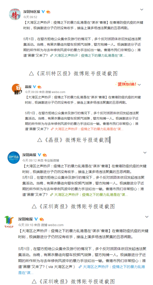 深圳特區(qū)報、晶報、深圳商報、深圳晚報等媒體微博賬號也廣泛轉載了這篇熱評文章,一致認為,在疫情防控最關鍵最緊張的時刻,極端激進分子若一再重演“黑暴”鬧劇,必將摧毀香港經濟僅存的復蘇希望,變相“謀殺”香港。
